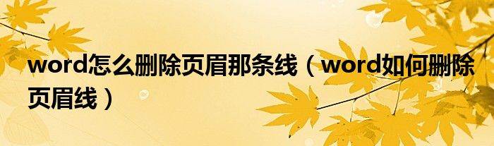 word怎么删除页眉那条线(word如何删除页眉线)
