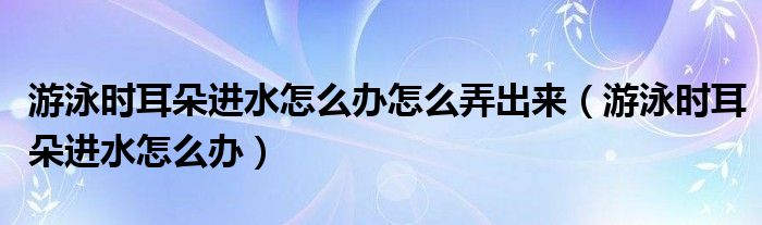 关于游泳时耳朵进水怎么办怎么弄出来,游泳时耳朵进水怎么办这个很多人还不知道,今天菲菲来为大家解答以上的问题,现在让我们一起来看看吧!