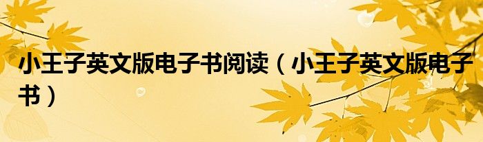 小王子英文版电子书阅读(小王子英文版电子书)