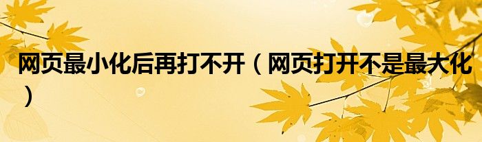 关于网页最小化后再打不开,网页打开不是最大化这个很多人还不知道,今天菲菲来为大家解答以上的问题,现在让我们一起来看看吧!