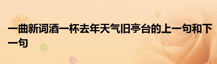 关于一曲新词酒一杯去年天气旧亭台的上一句和下一句这个很多人还不知道,今天菲菲来为大家解答以上的问题,现在让我们一起来看看吧!
